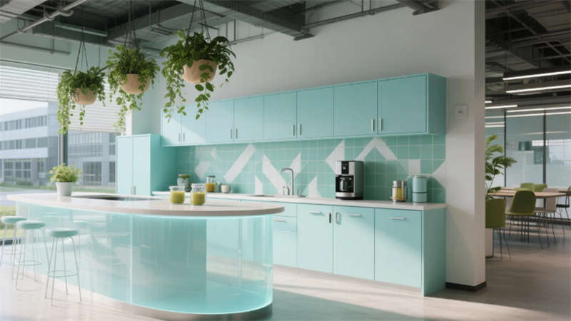 智能協(xié)作區(qū)配備環(huán)形數(shù)字屏幕與可書寫隔斷,激發(fā)團隊創(chuàng)造力;靜音艙體與獨立辦公室滿足深度工作需求。員工休憩區(qū)通過柔和的馬卡龍色調與曲線家具,營造松弛氛圍。接待廳的波紋金屬墻與全息投影臺,在溫潤木元素中點綴未來感。