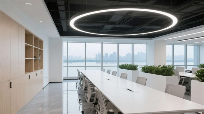 開放辦公區(qū)以模塊化綠植隔斷柔化邊界,智能會議艙曲面屏動態(tài)呈現(xiàn)江岸線,賦予協(xié)作以在地詩意。創(chuàng)意實驗室的可書寫玻璃墻與磁吸家具激發(fā)即興創(chuàng)造,而階梯沙龍區(qū)弧形燈帶如江水蜿蜒,引導(dǎo)思想交匯。